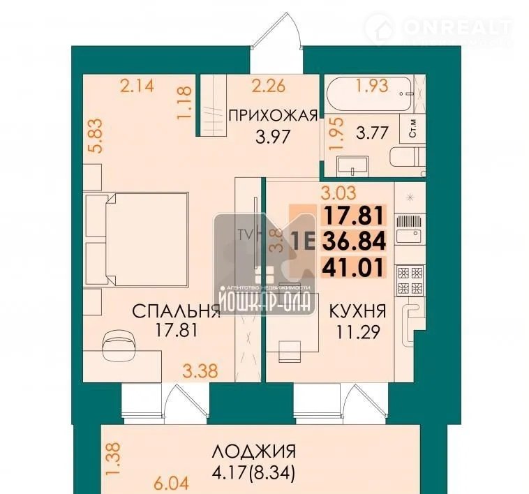 Общая площадь 41 м2