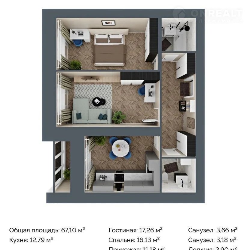 Общая площадь 67.1 м2
