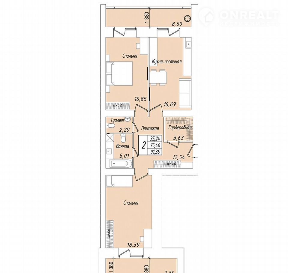 Балкон, лоджия 1 лоджия