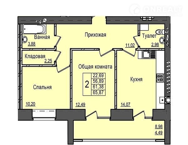 Общая площадь 65.9 м2