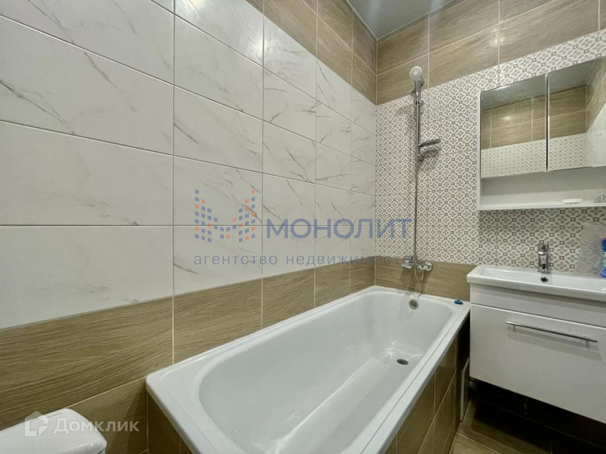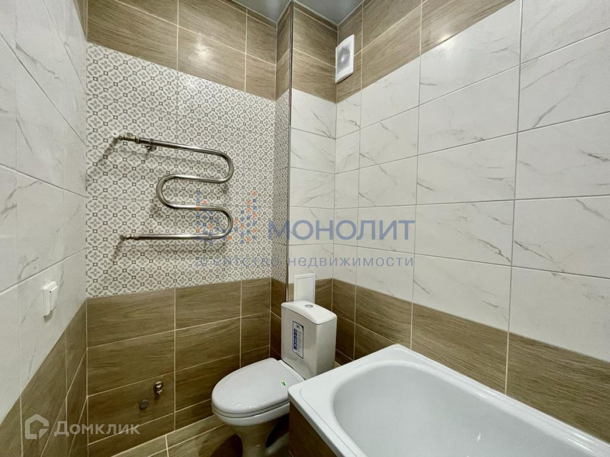 Просторная комната 19 квм правильной формы. Кухня 9 квм. Совмещенный санузел отделан современным кафелем в светлом оттенке.