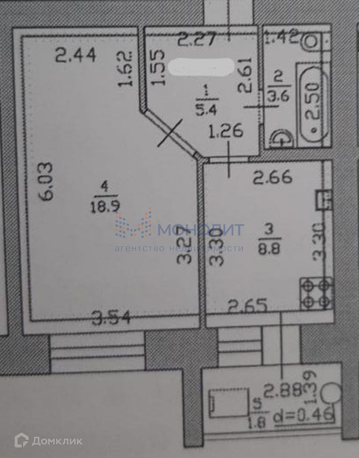 Балкон, лоджия 1 балкон