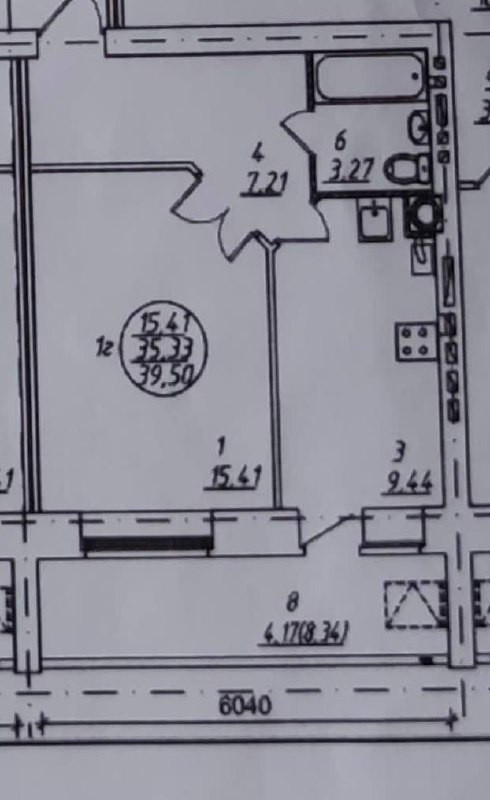 Общая площадь 39.5 м2