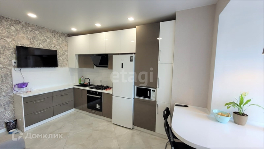 Современная большая кухня со встроенной техникой. Утепленный балкон на котором можно расположить рабочую зону. Теплые полы во всей квартире. Импортная сантехника