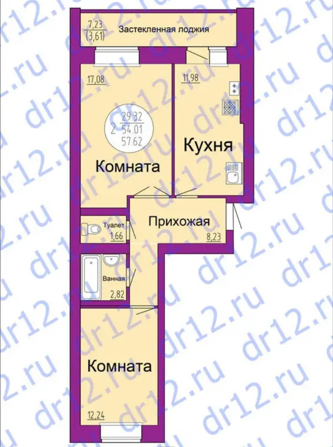 Общая площадь 58 м2