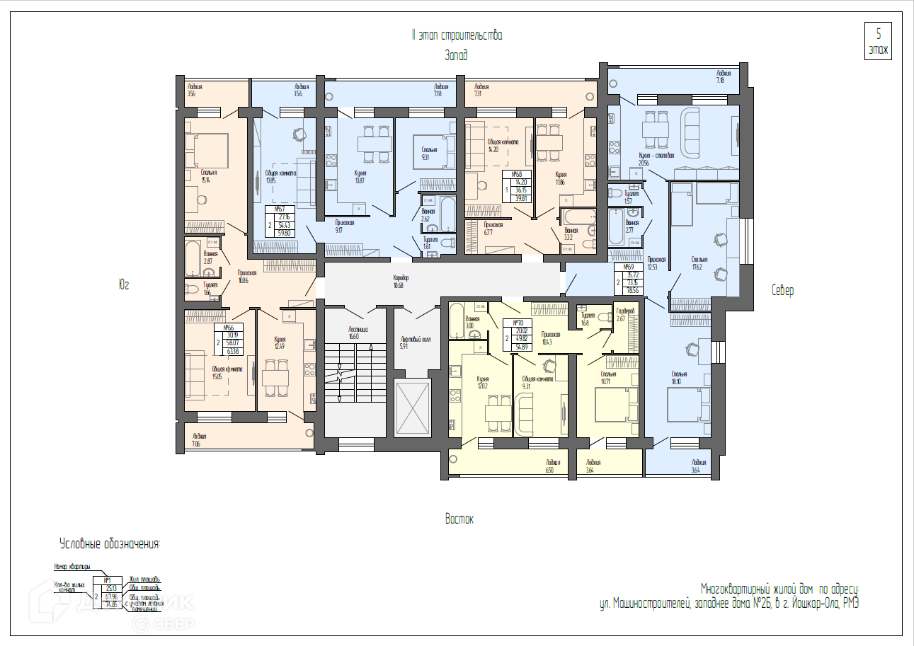 2-комнатная квартира, 54.89 м2, этаж 6 / 9, на продажу в Йошкар-Оле, улица Дружбы, 109