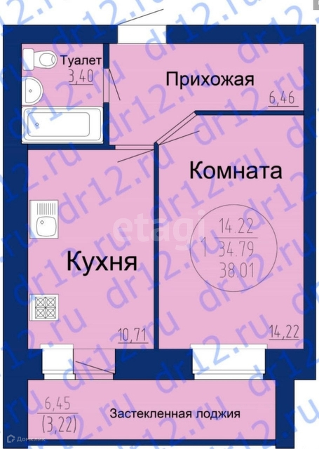 Общая площадь 38.1 м2