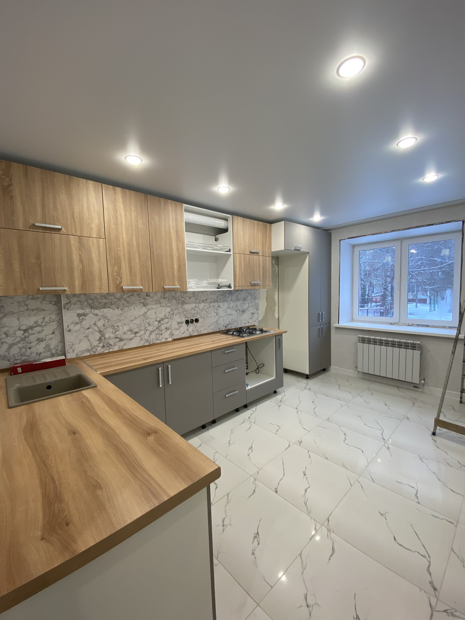 Квартира в новом доме. Тёплые полы, поквартирное отопление, натяжные потолки во всей квартире в том числе и на балконе.