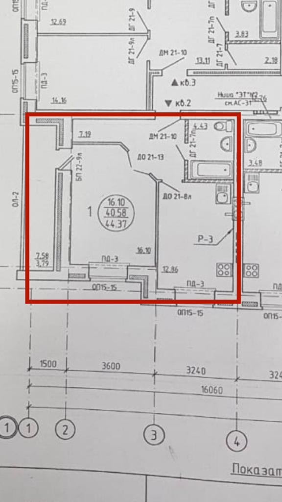 Общая площадь 44.37 м2