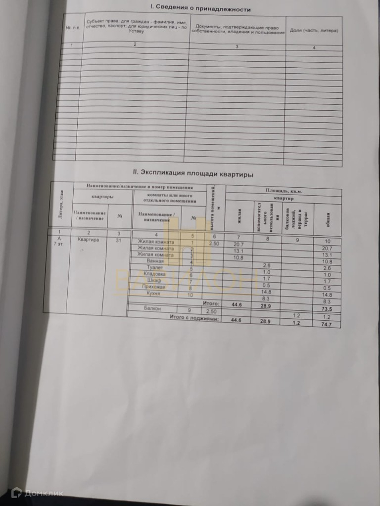 Общая площадь 74.7 м2