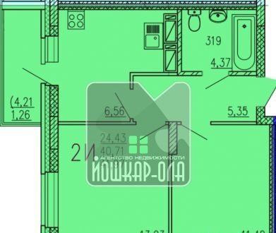 2-комнатная квартира, 42 м2, этаж 6 / 9, на продажу в Йошкар-Оле, Прибрежный проезд