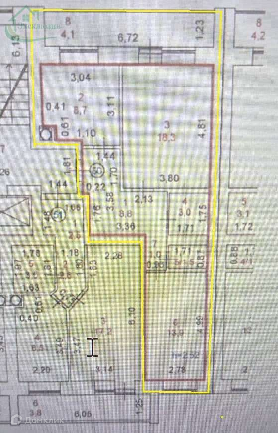 Высота потолков 2.5 м