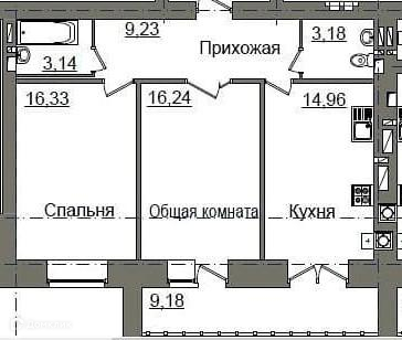 Жилая площадь 32.57 м2