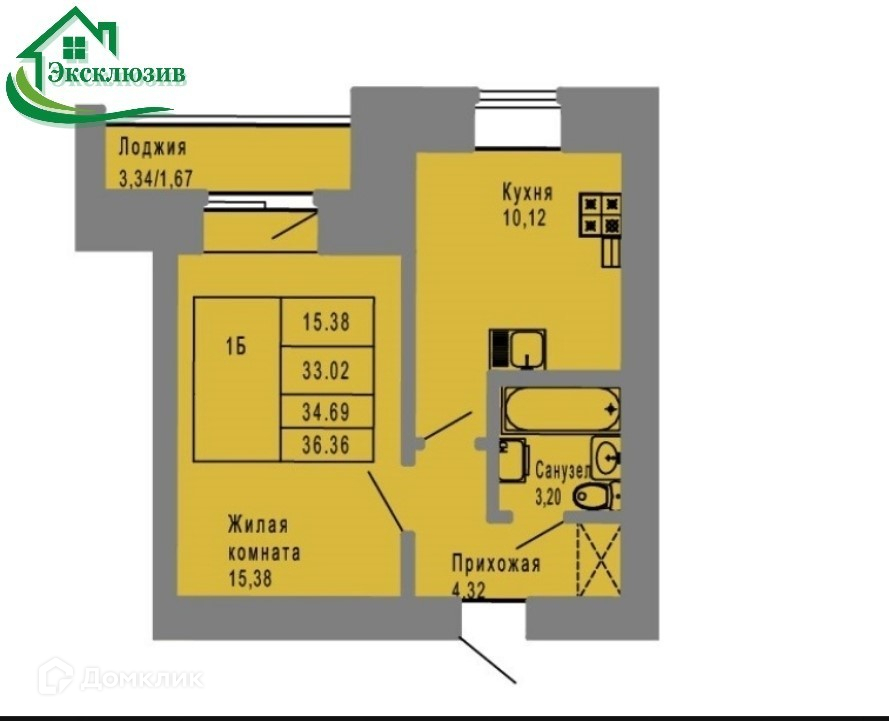 Общая площадь 36.4 м2