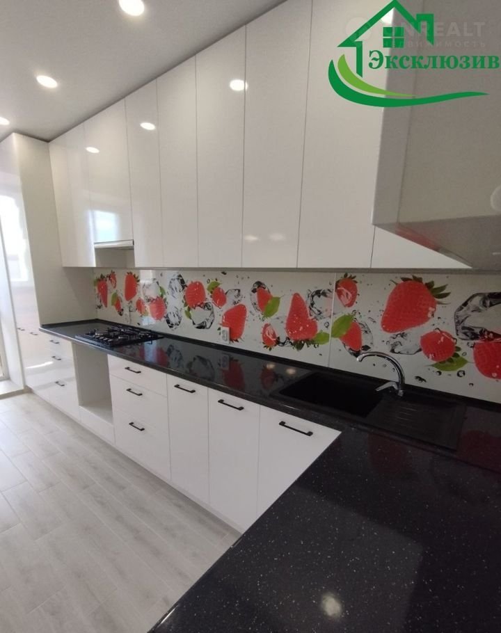 Кухня площадью 13,5 кв.м. это мечта хозяйки, оборудована шикарным кухонным гарнитуром, сделанным по индивидуальному проекту. Имеется встроенная варочная плита и вытяжка.