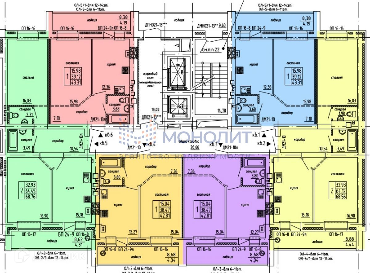 Общая площадь 42.81 м2