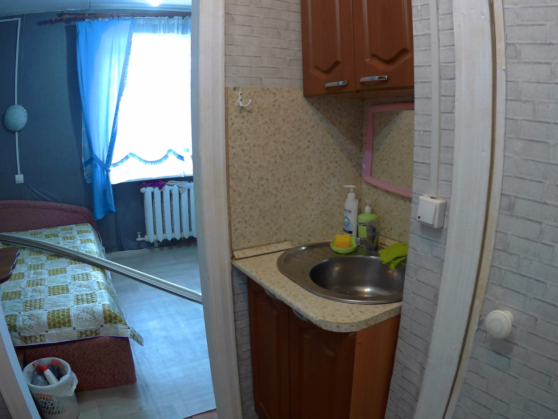 Квартира гостиного типа, окно пластиковое, дверь металлическая, туалет, душ, горячая вода через бойлер, спокойные соседи, никто не прописан, свободна от проживающих. Торг уместен.
