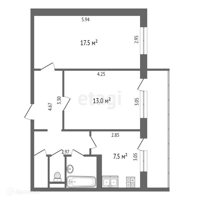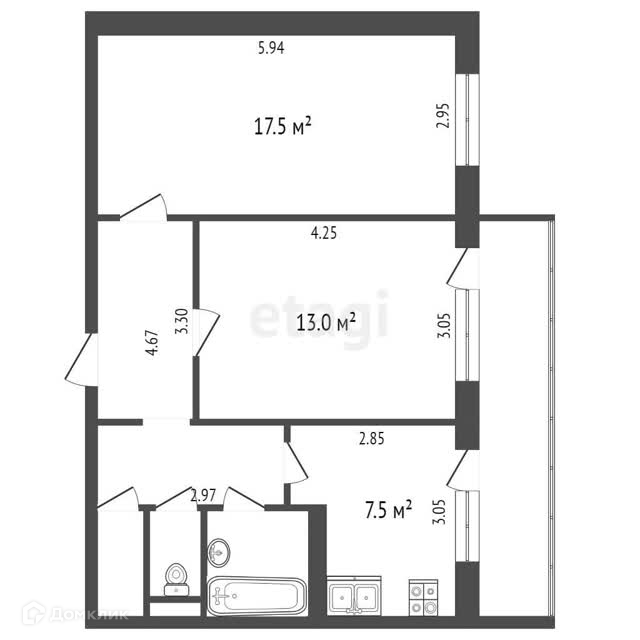 Общая площадь 56 м2