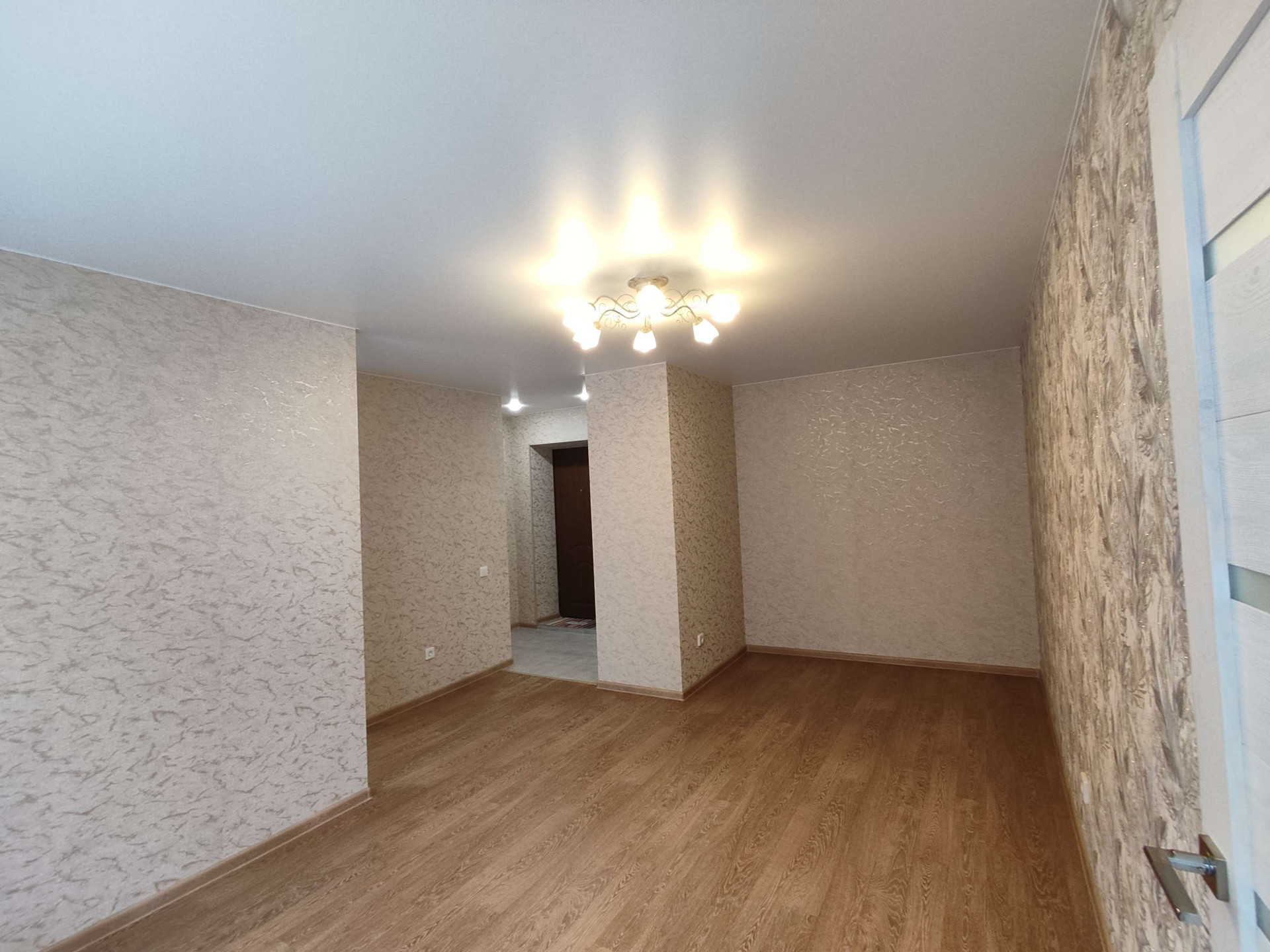 Квартира в очень хорошем состоянии, после ремонта никто не жил. Постелен новый линолеум, потолки- натяжные, установлены пластиковые стеклопакеты, заменены радиаторы отопления, стены выровнены, установлены  межкомнатные филенч.двери. С/у отремонтирован полностью: современный кафель, заменены трубы и сантехника.