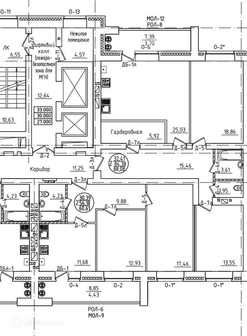 Общая площадь 60.7 м2