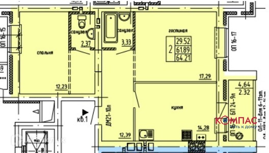 Общая площадь 64.21 м2