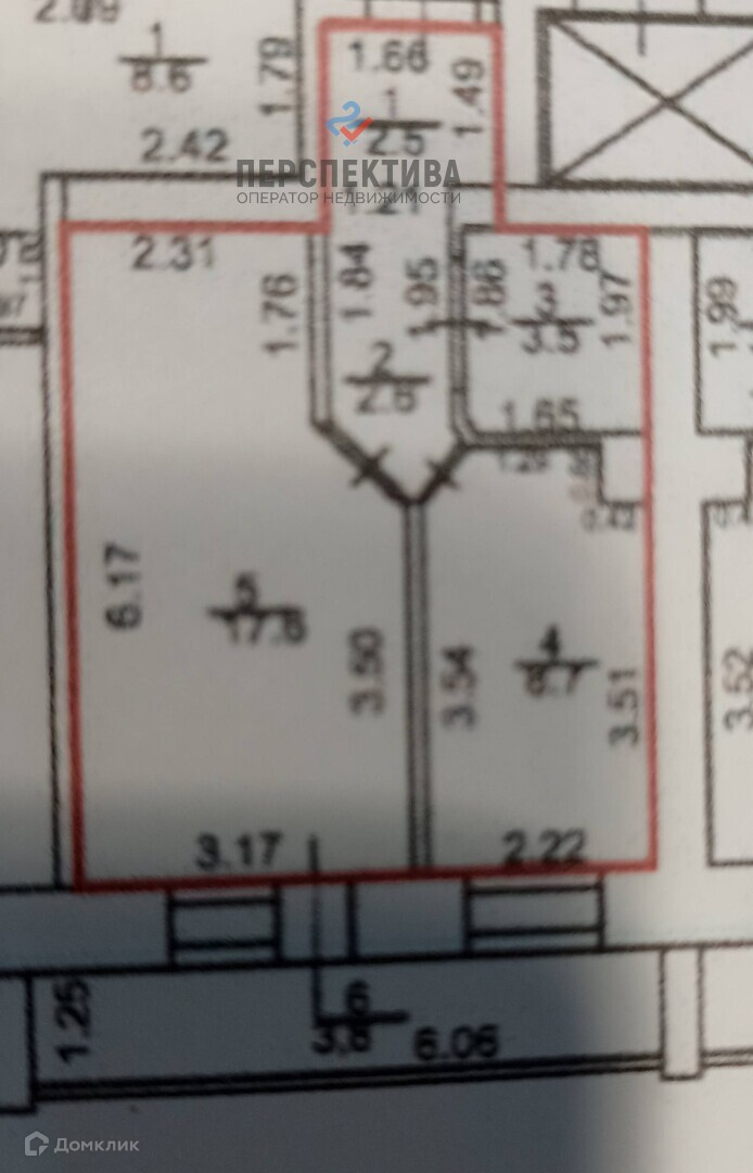 Жилая площадь 17.4 м2