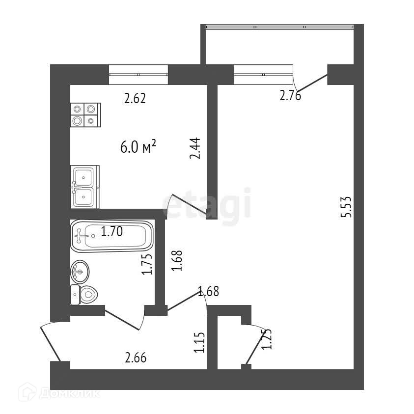 Балкон, лоджия 1 балкон