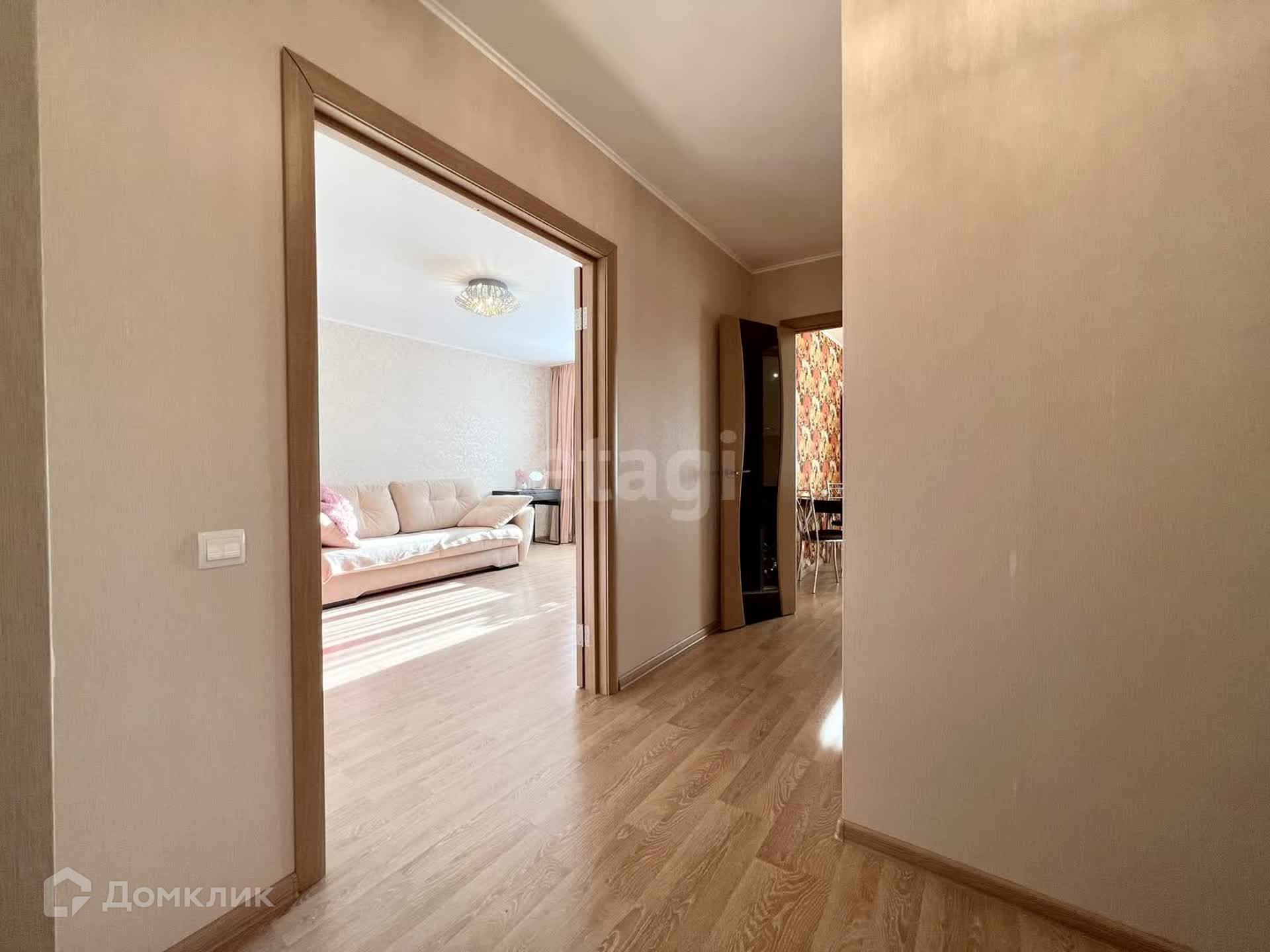 - При входе в квартире, в прихожей имеется огромный встроенный шкаф под хранение всех ваших вещей. Вы будете лишены шкафов в гостиной, а это дополнительное пространство для комфортного проживания. Также есть место под обувницу, пуфик и настенную вешалку для верхней одежды.