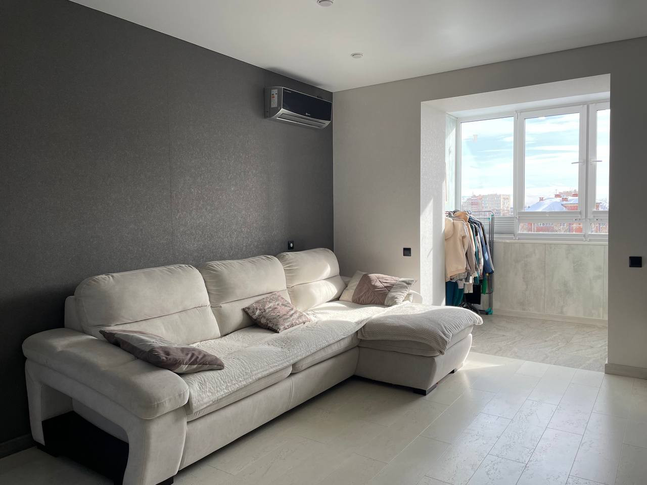 - Индивидуальное (поквартирное) отопление. Выполнены качественные работы по теплоизоляции. Котёл не превышает уровня 38 градусов тепла. Дополнительно установлен современный кондиционер Electrolux.