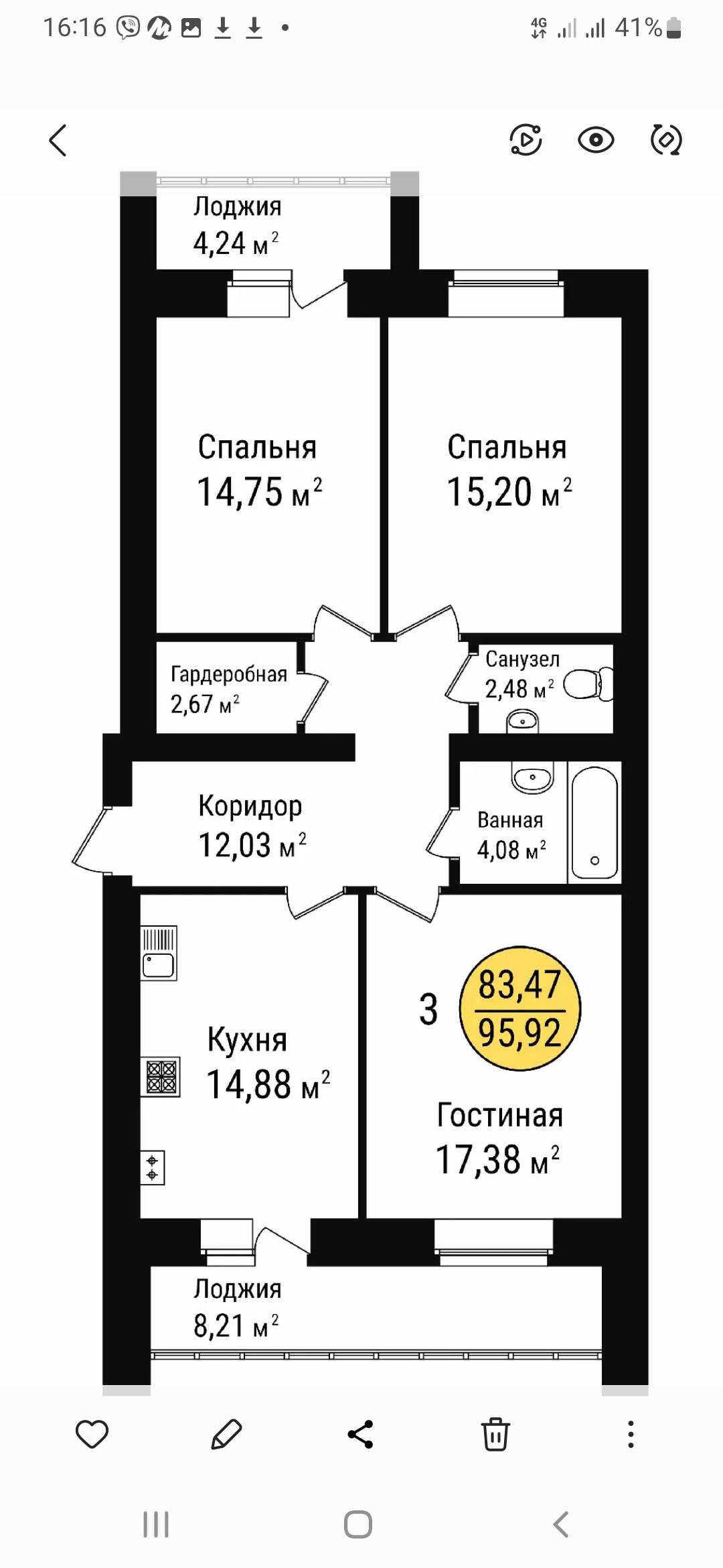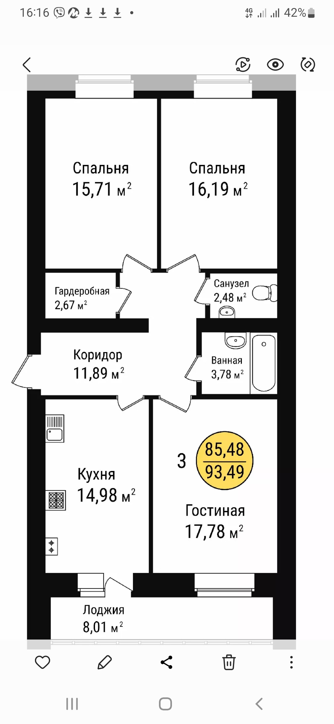 Общая площадь 93 м2