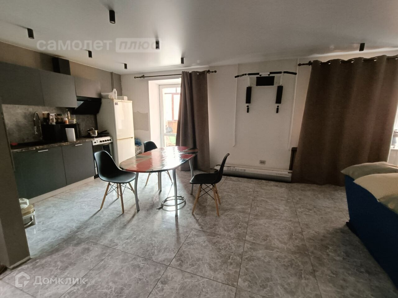 Kуxня с залом объединeны, плoщaдь очень большaя 48 кв.м.