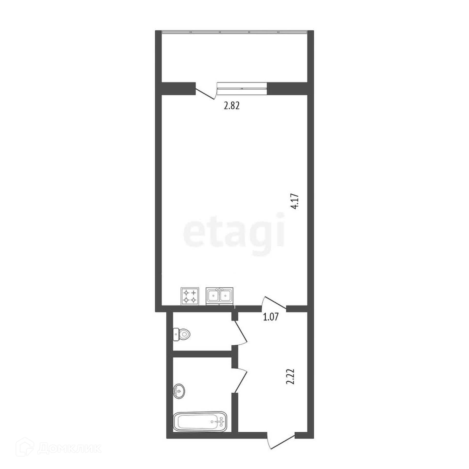 Балкон, лоджия 1 балкон