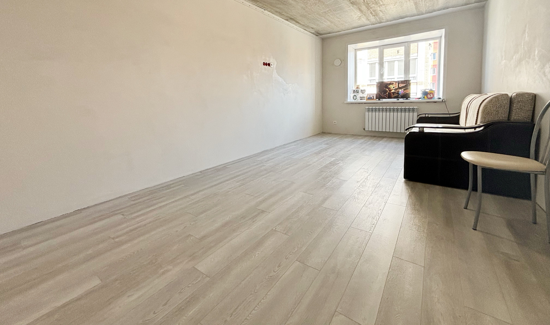 - стены все выровнены и ошпаклеваны, готовы к оклейке.