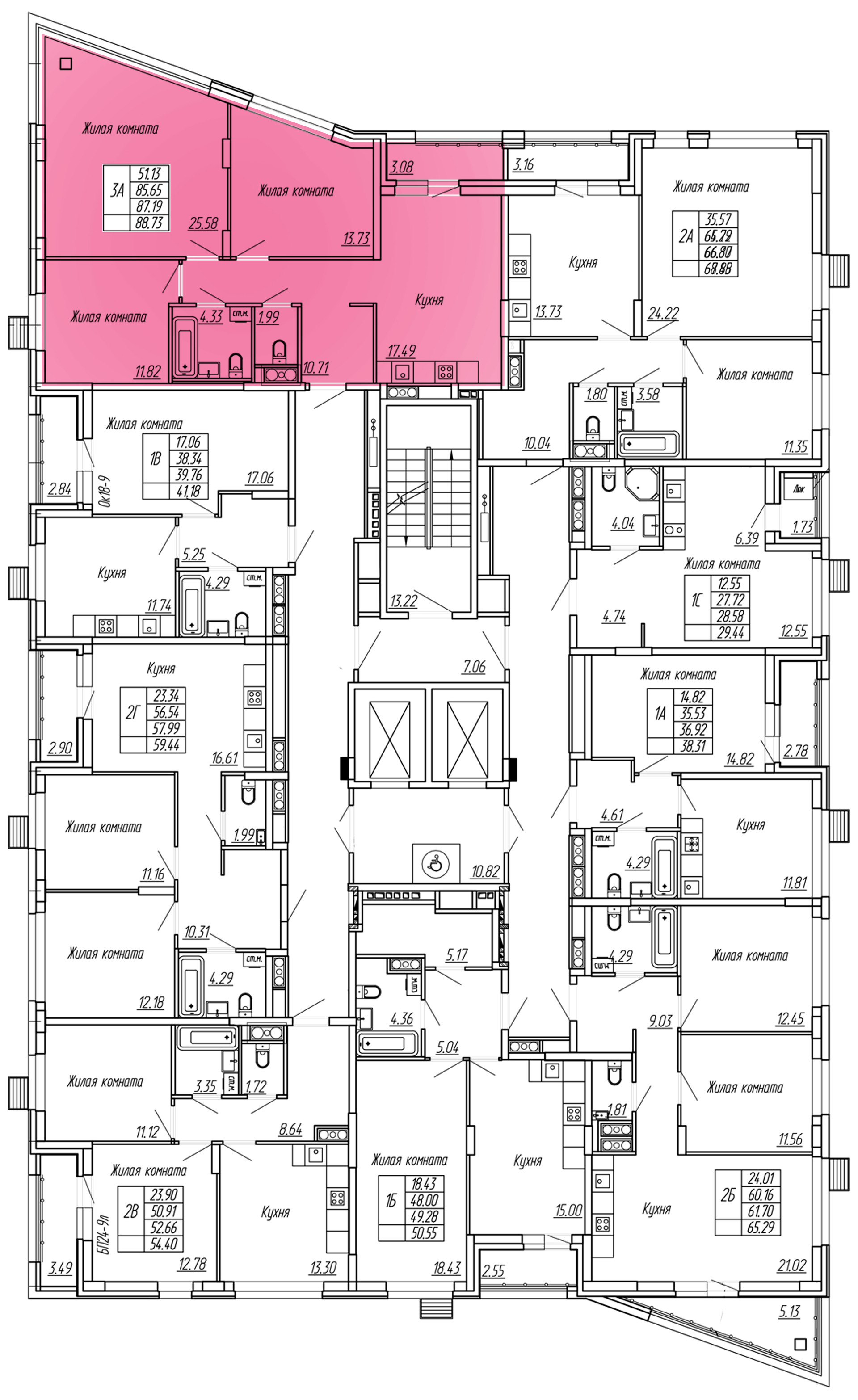 Жилая площадь 51.1 м2