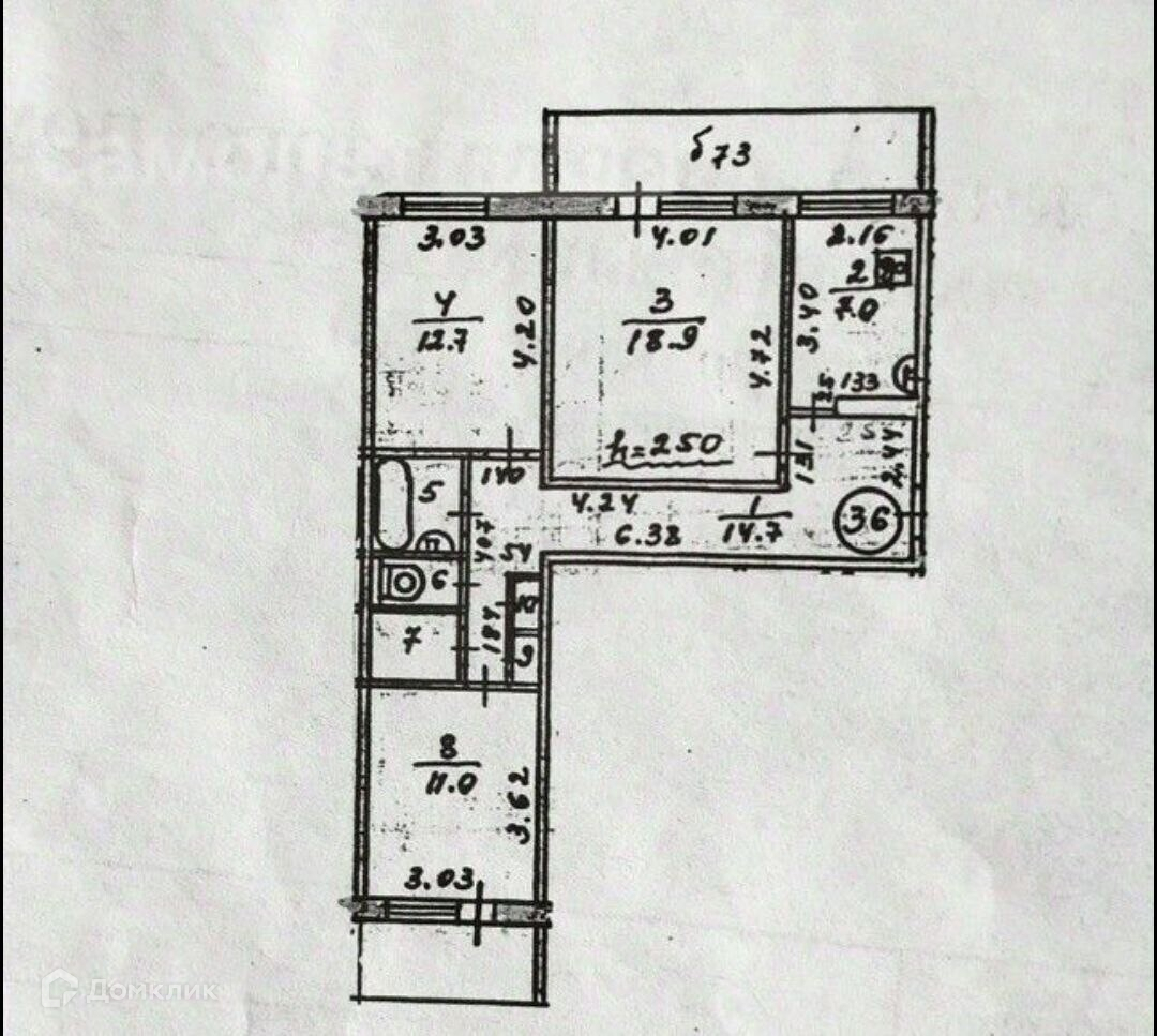 Высота потолков 2.5 м