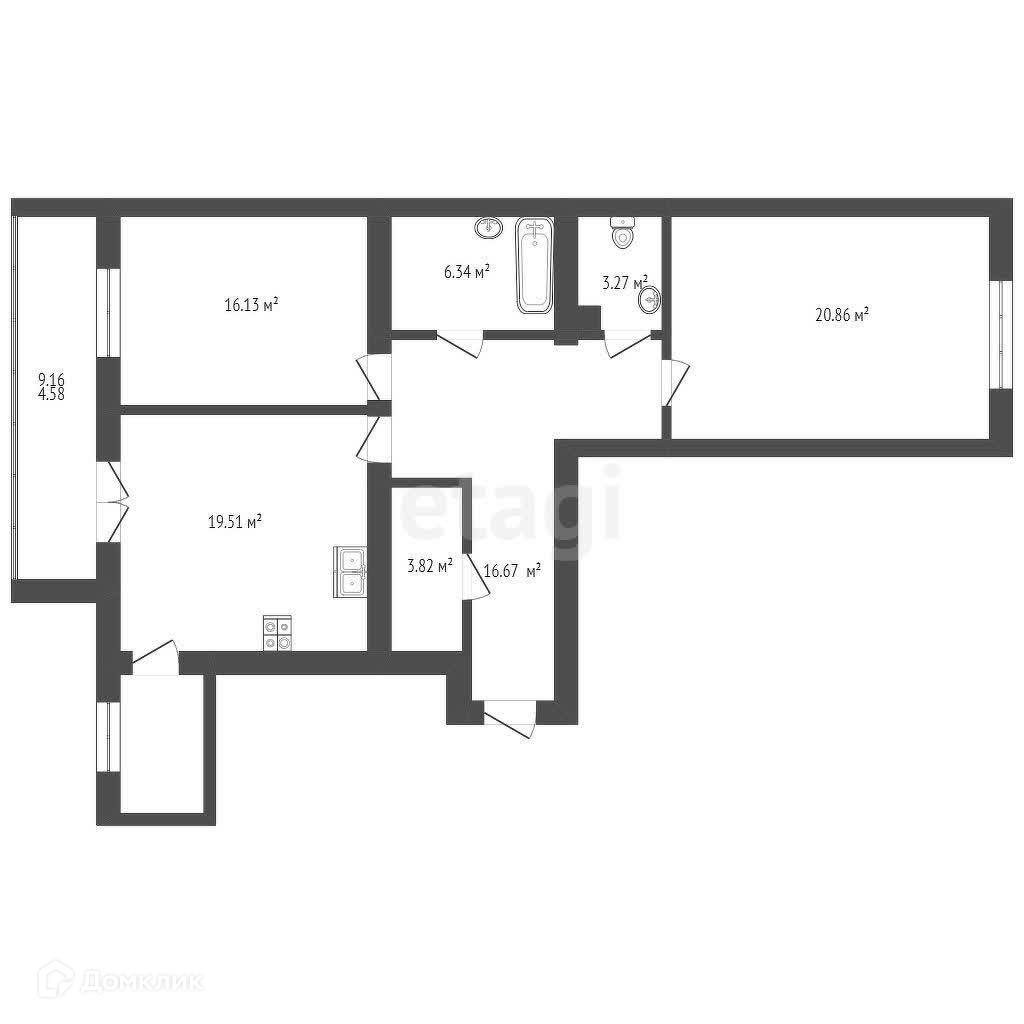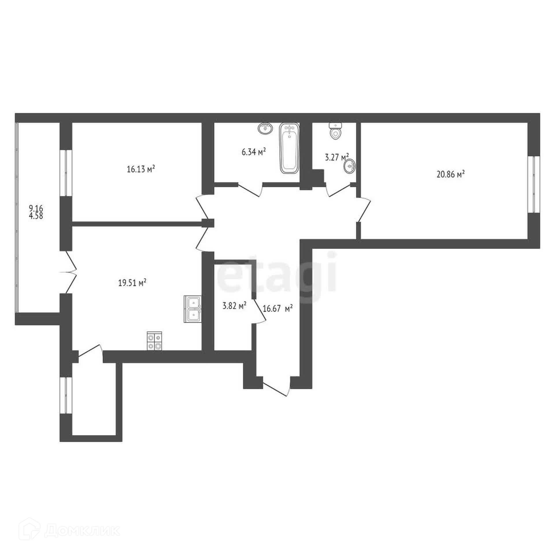 - Площадь квартиры 101,09 кв.м. Большая ванна комната 6,34 кв.м. В прихожей имеется гардеробная, площадью 3,82 кв.м. Кухня-гостиная с панорамным выходом на лоджию имеет площадь 19,51 кв.м. К ней примыкает подсобное помещение с окном, площадью 5,33 кв.м.
