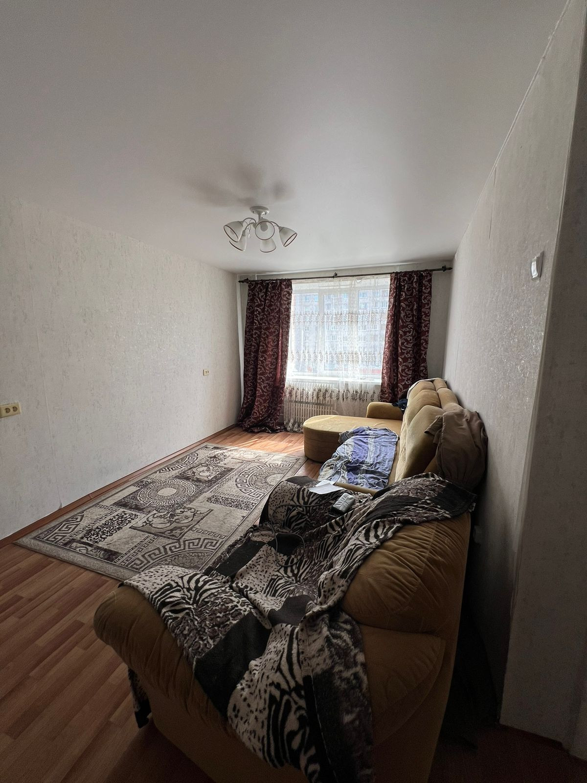 Уютная, светлая, тёплaя комната, с размером квартиры, с хорошим ремонтом. Дом удобно расположен, рядом остановка, школа, магазины.