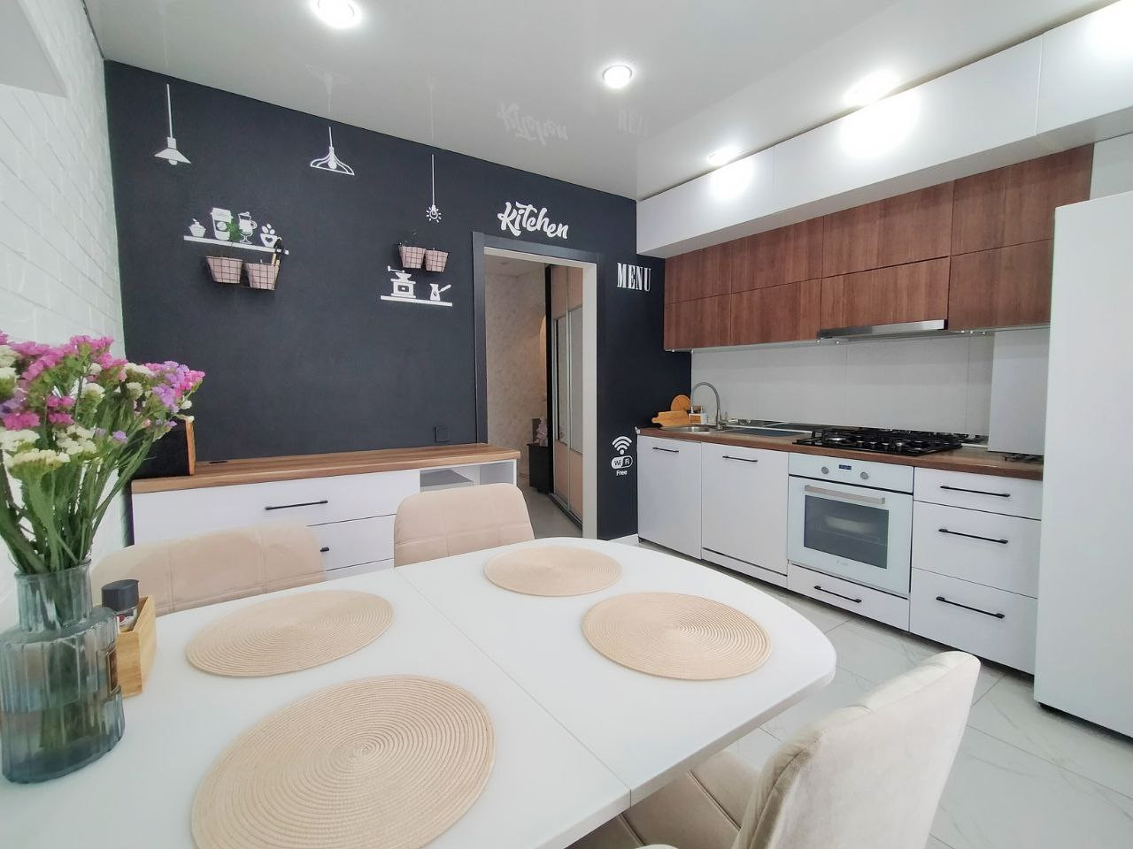 Просторная кухня позволит вам собрать всех друзей и родственников за одним столом.