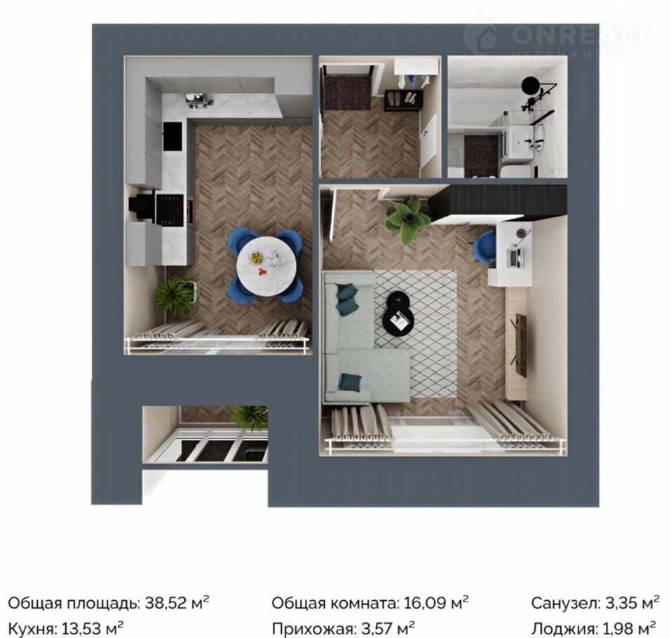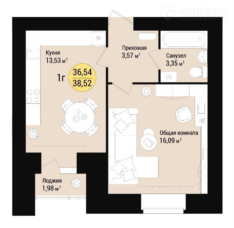 Общая площадь 39 м2