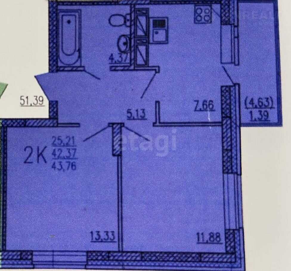 Общая площадь 43.8 м2