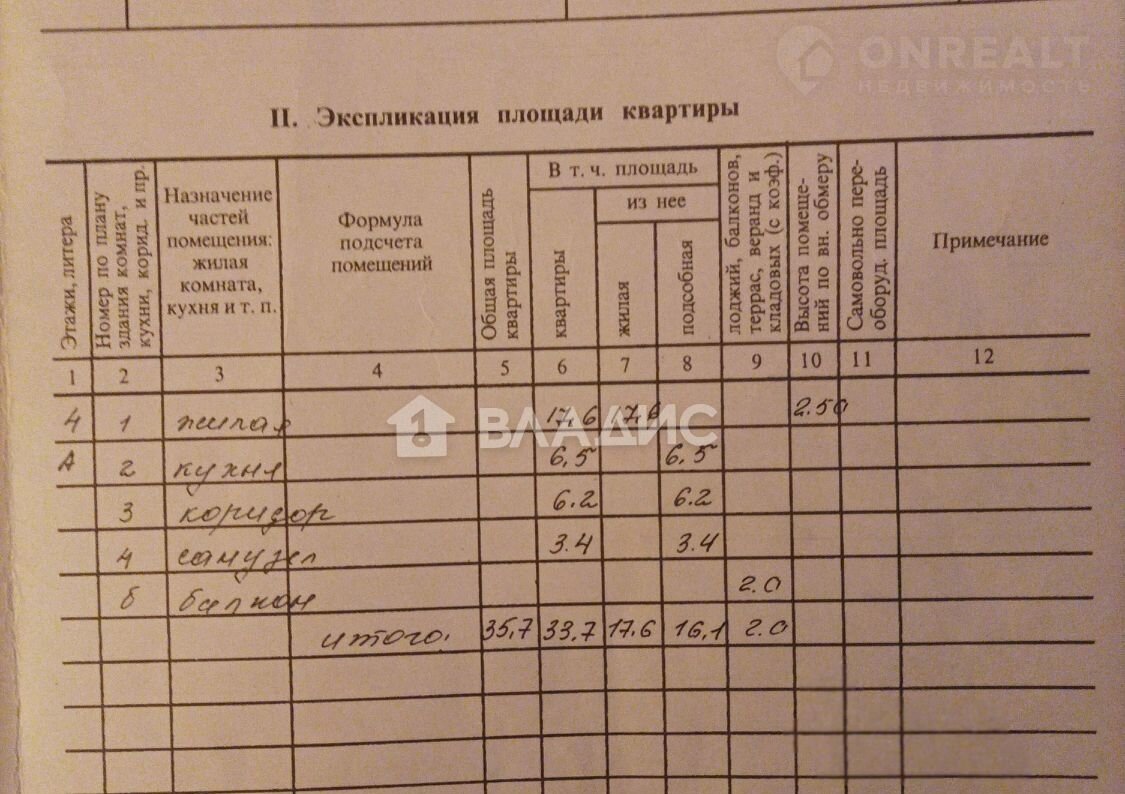 Общая площадь 35.7 м2