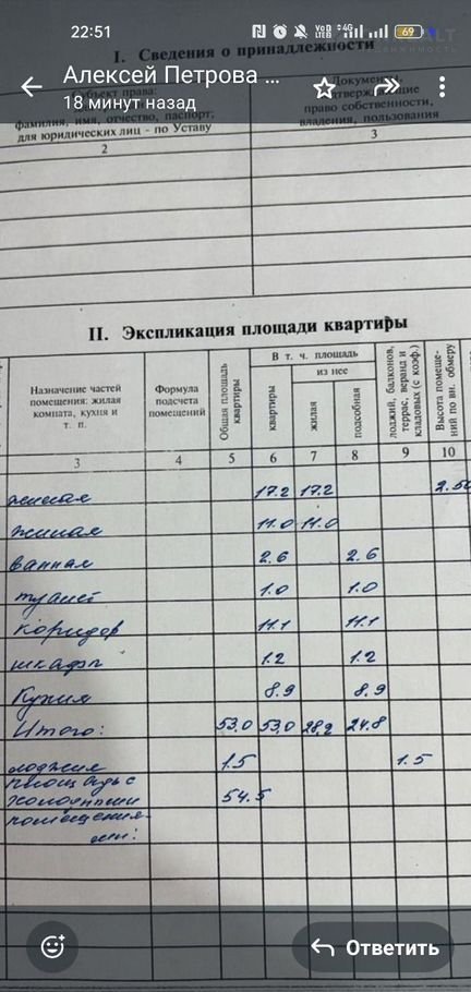 Общая площадь 53 м2