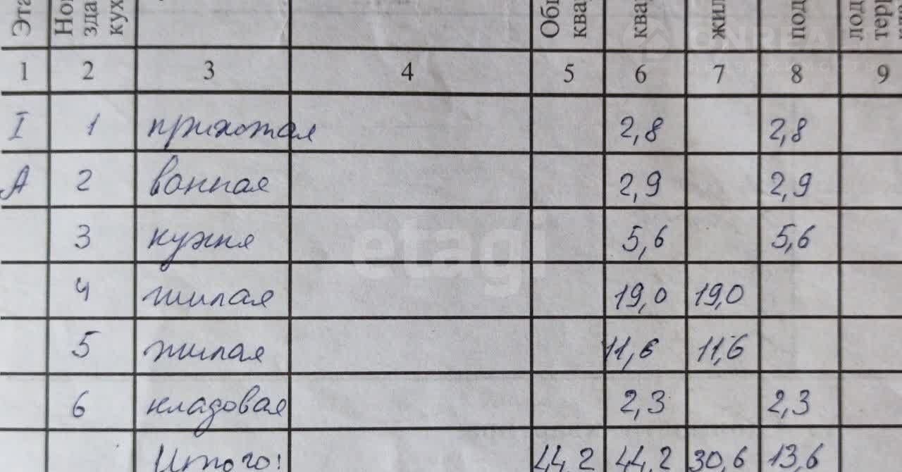 Общая площадь 44.2 м2