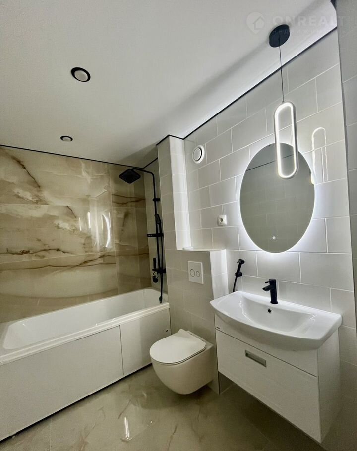• Санузел: большой, с инсталляцией, подвесной мойкой и точечным освещением