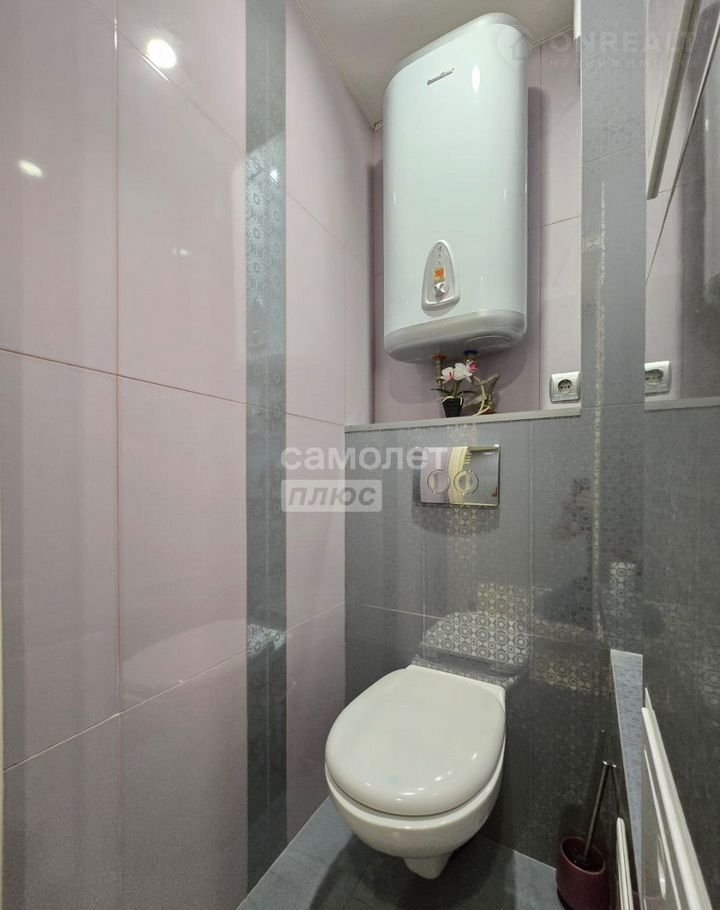 Санузел раздельный в современной плитке. Для удобства установлены бойлер ,стиральная машина и инсталляция.