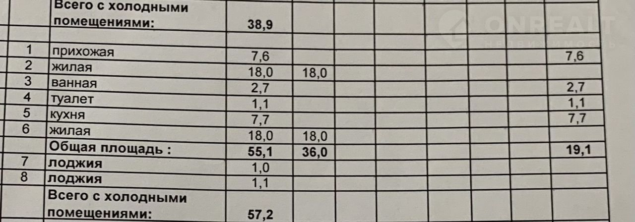 Общая площадь 55.1 м2