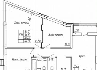 Продажа 3-ком. квартиры, 87.2 м2