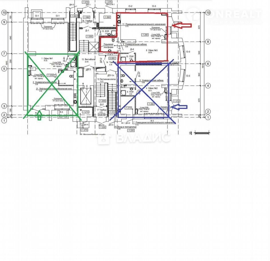 Площадь 70 кв.м. На плане офис 3. Цена 180 т.р./кв.м.