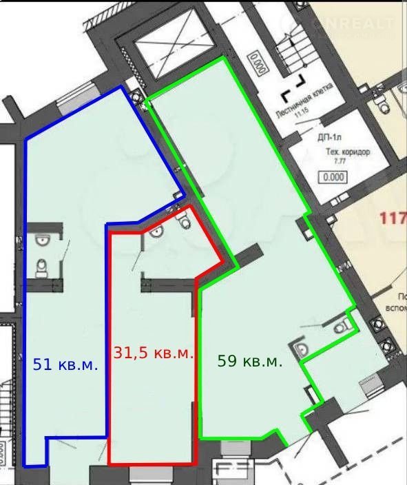 Есть возможность организации помещений площадью от 31,5, 51, 59, 82,5, 91,5 кв. м (фото перепланировок приложены). Если рассматривать для арендного бизнеса – небольшие помещения востребованы в данной части города.