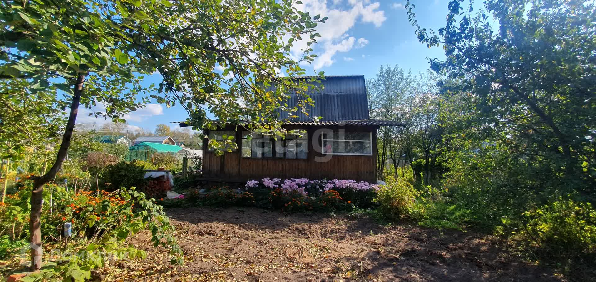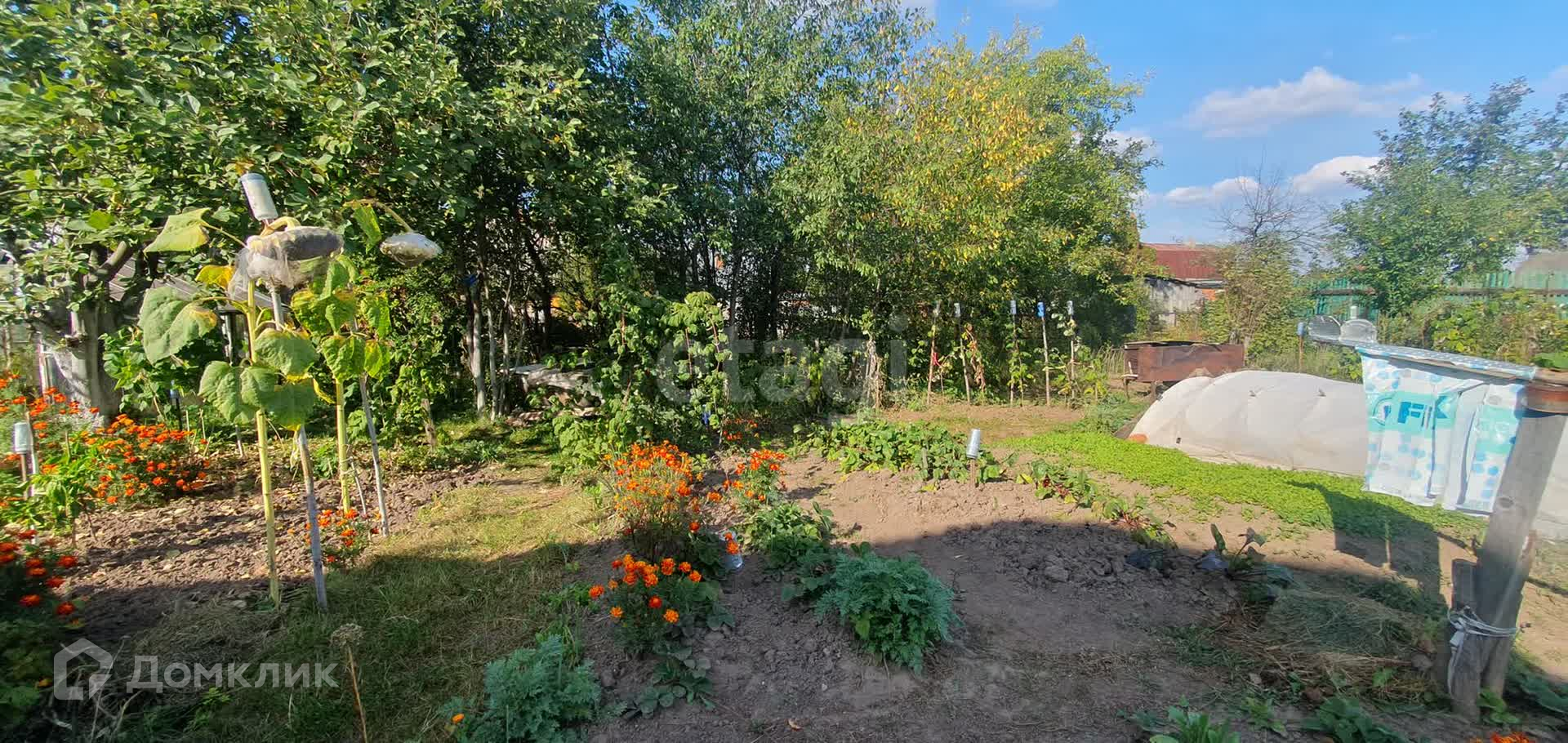 ✔ Участок ровный, ухоженный. Земля поднята. Растут плодовые деревья: яблони, сливы; плодоносят. Есть двухэтажный садовый дом, две теплицы, место для хранения садовых принадлежностей, колодец.